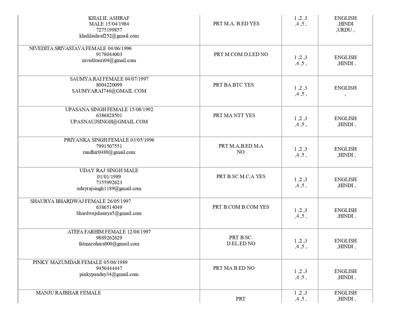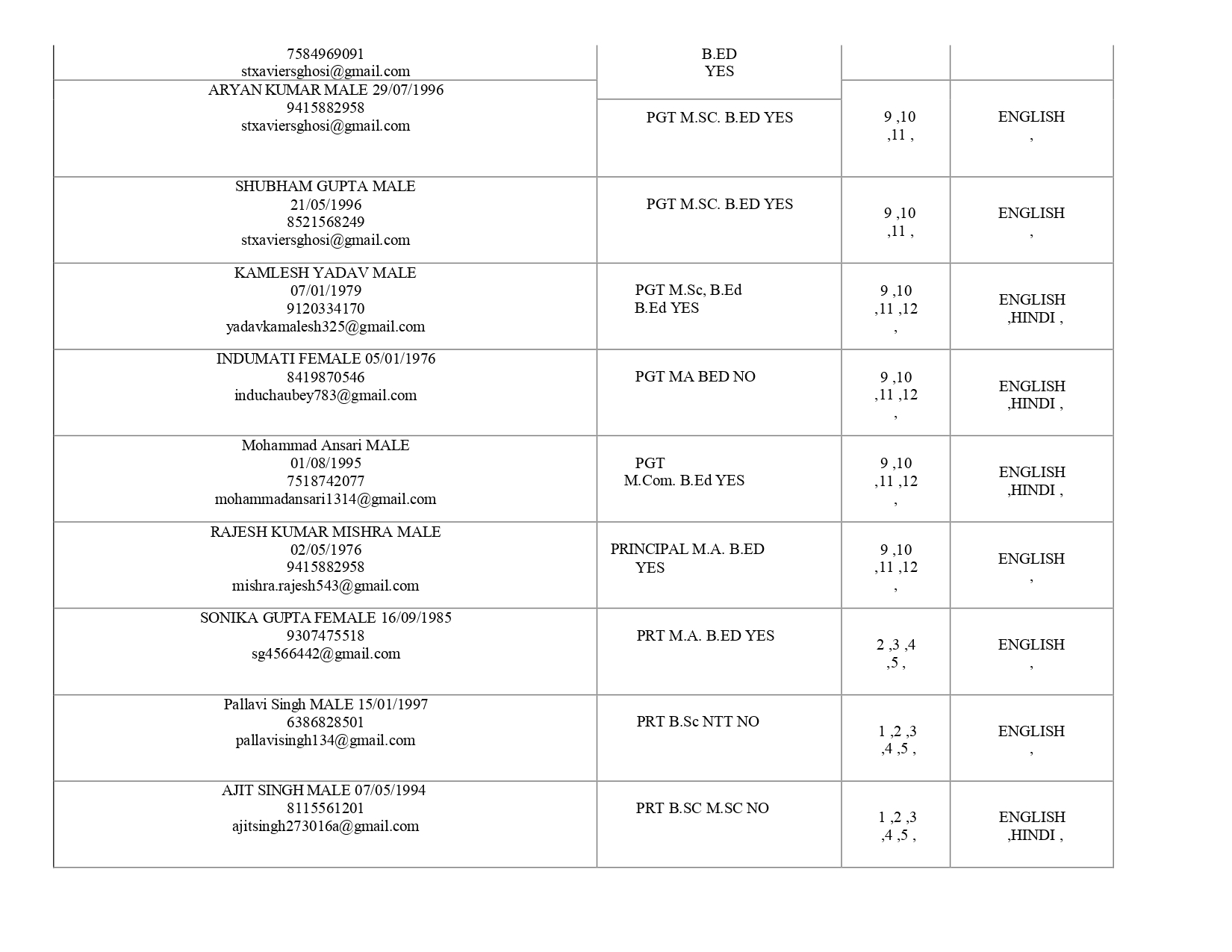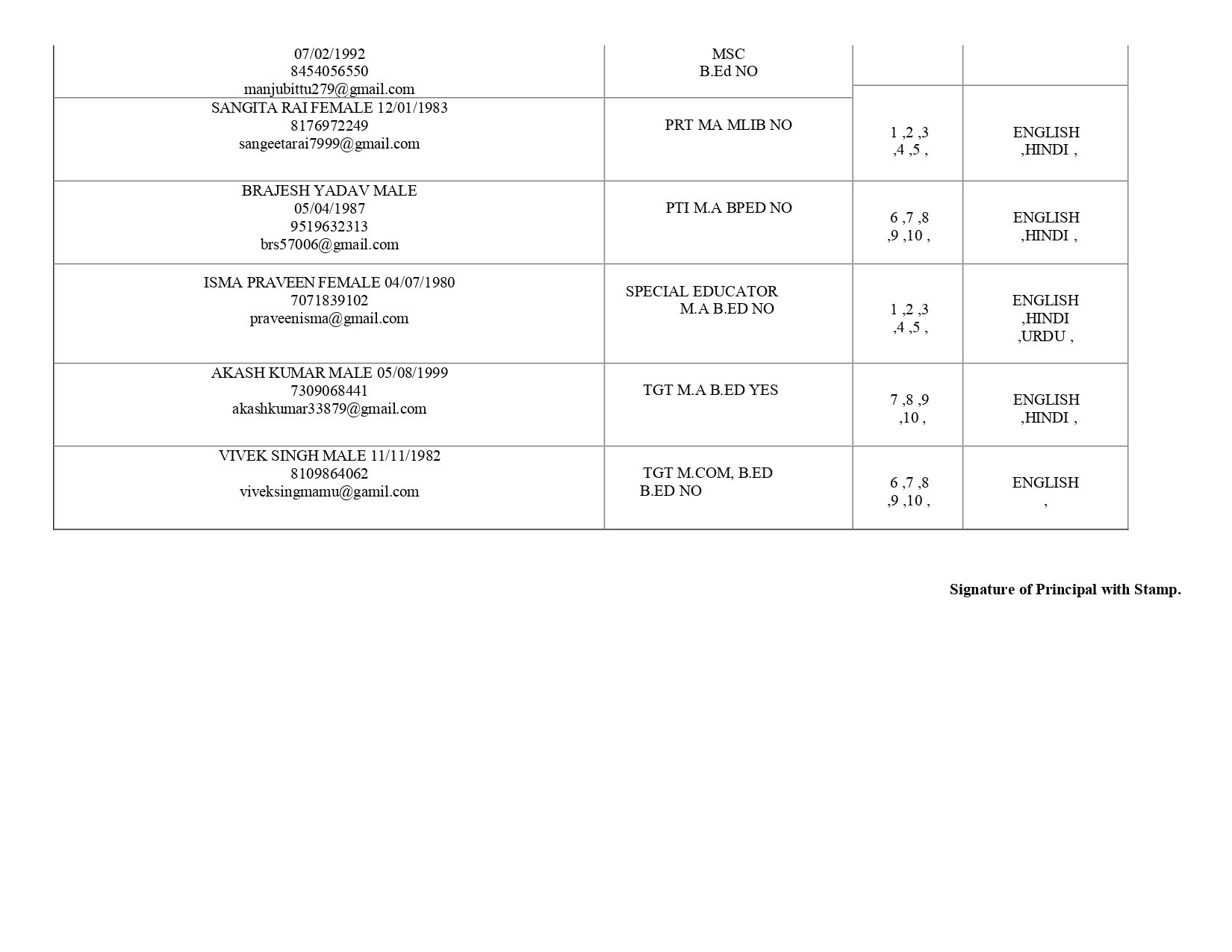 Teaching Staff